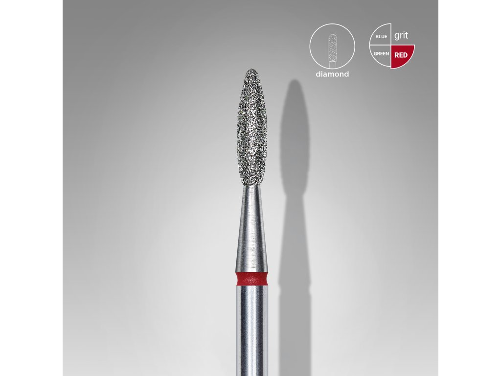 Diamantová fréza na nehty, "flame", červený, průměr hlavice 2,1 mm, pracovní část 8 mm Staleks Pro