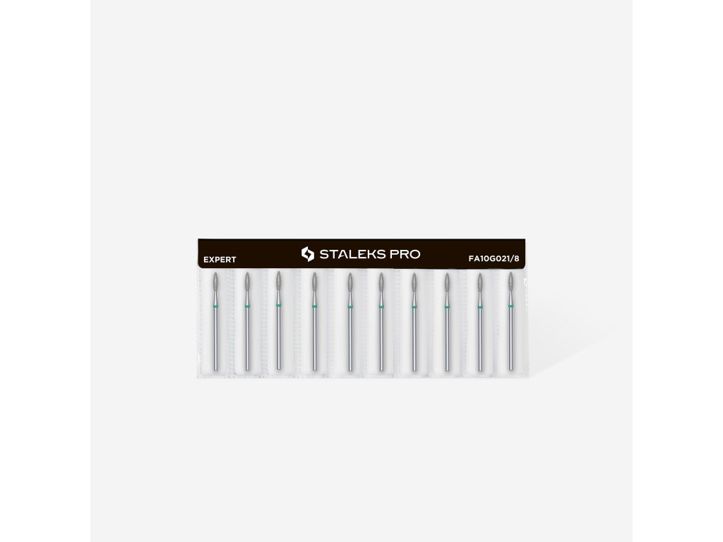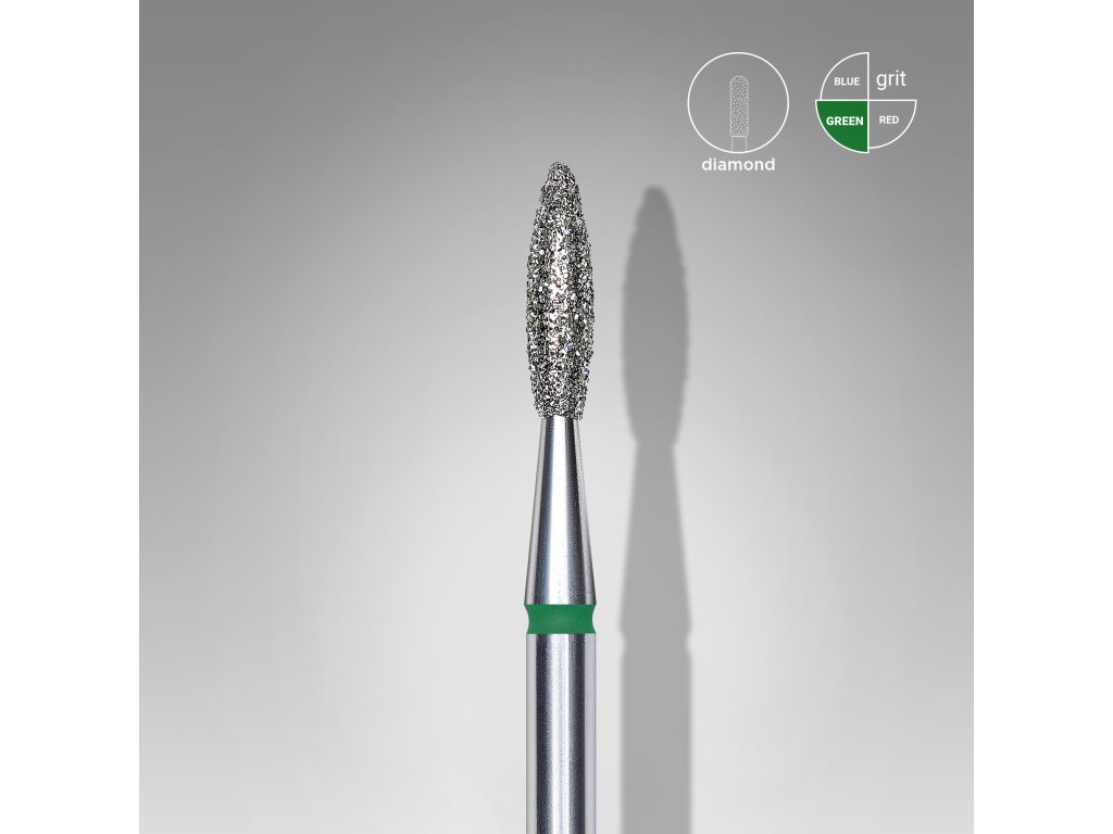 Diamantová fréza na nehty, "flame", zelený, průměr hlavy 2,1 mm, pracovní část 8 mm Staleks Pro