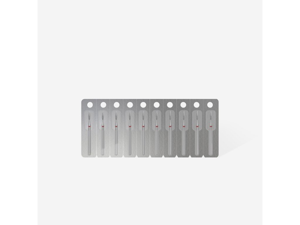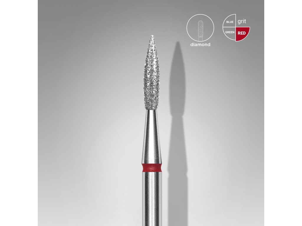 Diamantová fréza na nehty ostrý plamen červená EXPERT průměr hlavy 2,3 mm / pracovní část 8 mm Staleks Pro