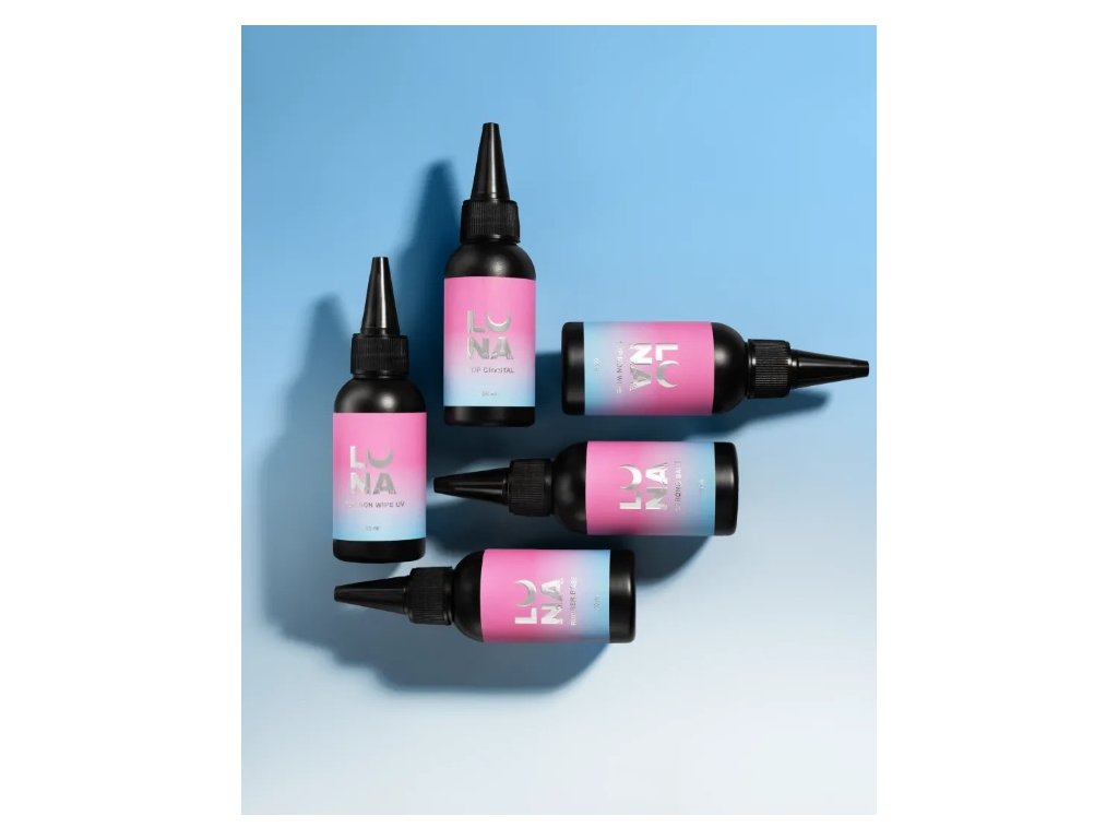 Vyrovnáme nehet pomocí Rubber Base LUNAmoon a vytvrdíme 90 s.
