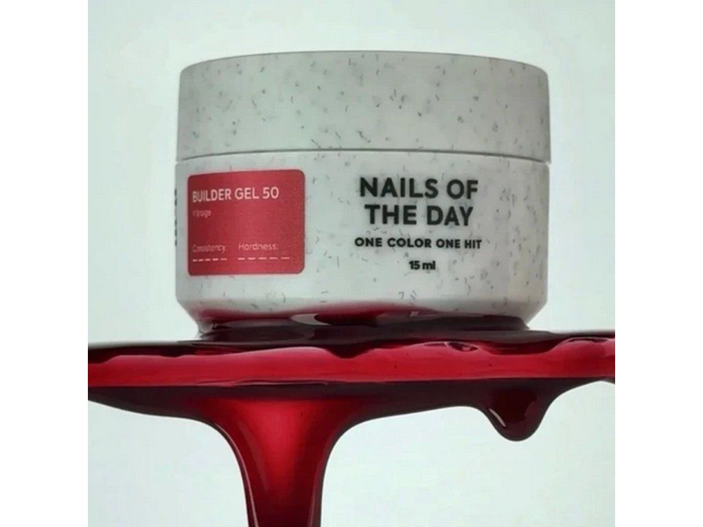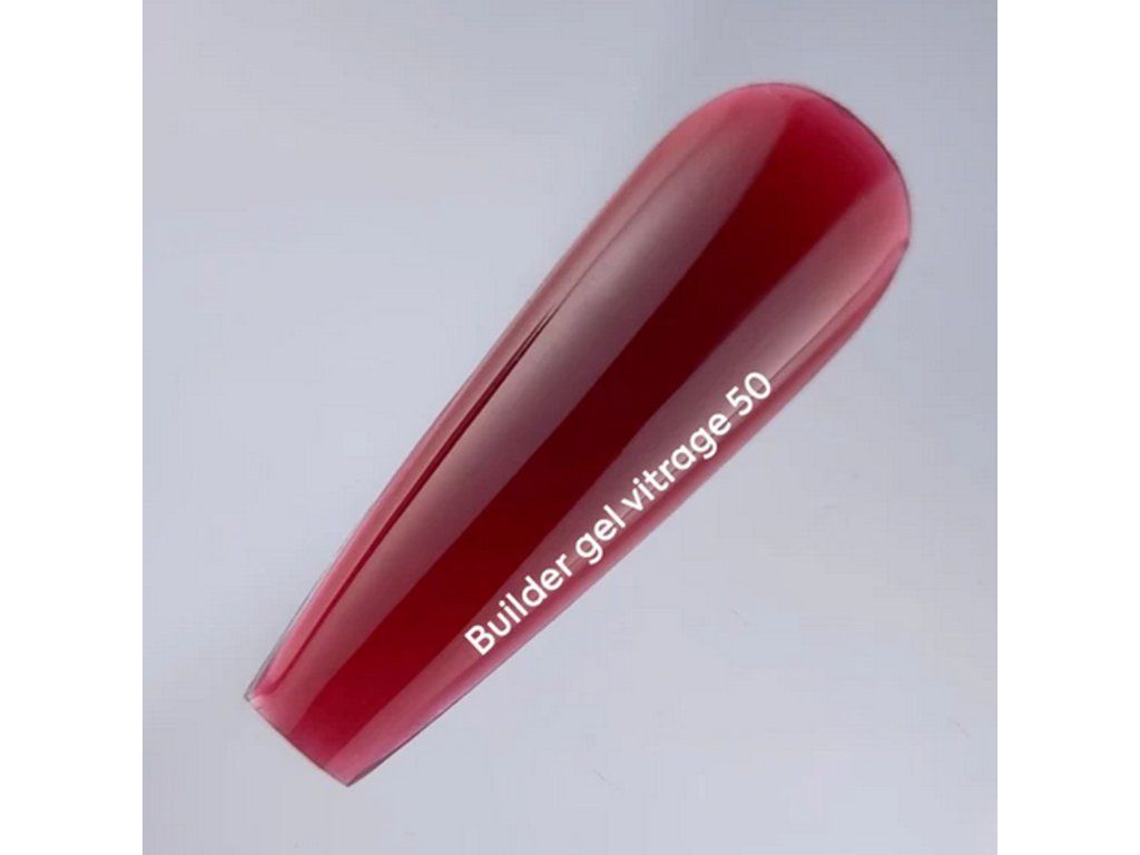 NAILSOFTHEDAY Builder gel 50 Vitrage — červený vitrážový stavební gel pro prodloužení nehtů, 15 ml