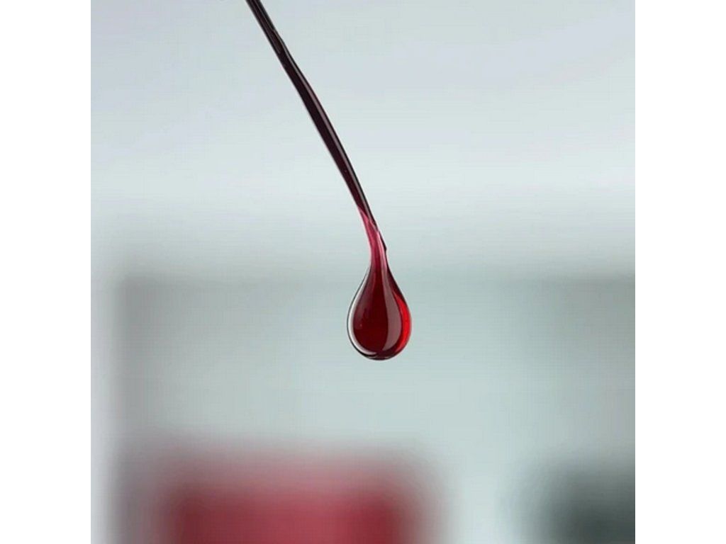 Červený vitrážový builder gel s efektem barevného skla, ideální pro prodloužení nehtů a kreativní designy.