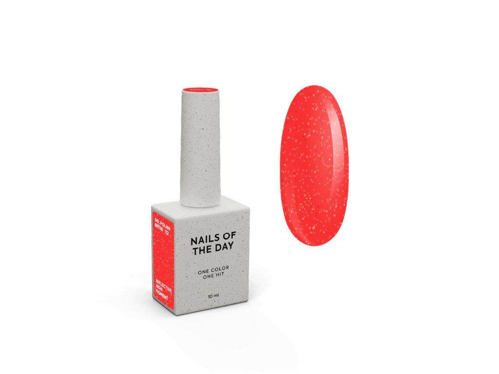 NAILSOFTHEDAY Gel polish Britni — jasně šarlatový se světloodrazným shimmerem a červenými třpytkami gel lak na nehty, který kryje v jedné vrstvě, 10 ml