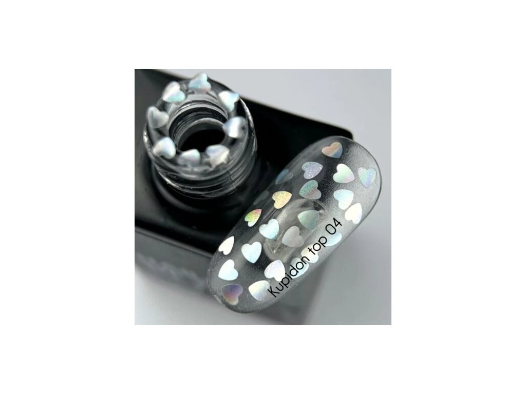 NAILSOFTHEDAY Kupidon top 04 — jemná finální vrstva na nehty s holografickými srdíčky, bez lepivé vrstvy, 10 ml