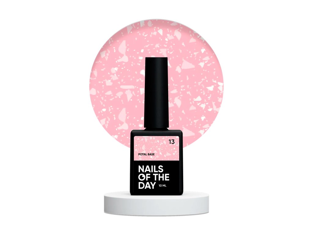 NAILSOFTHEDAY Potal Base 13 – jemně růžová báze s bílou stylovou potalí, 10 ml
