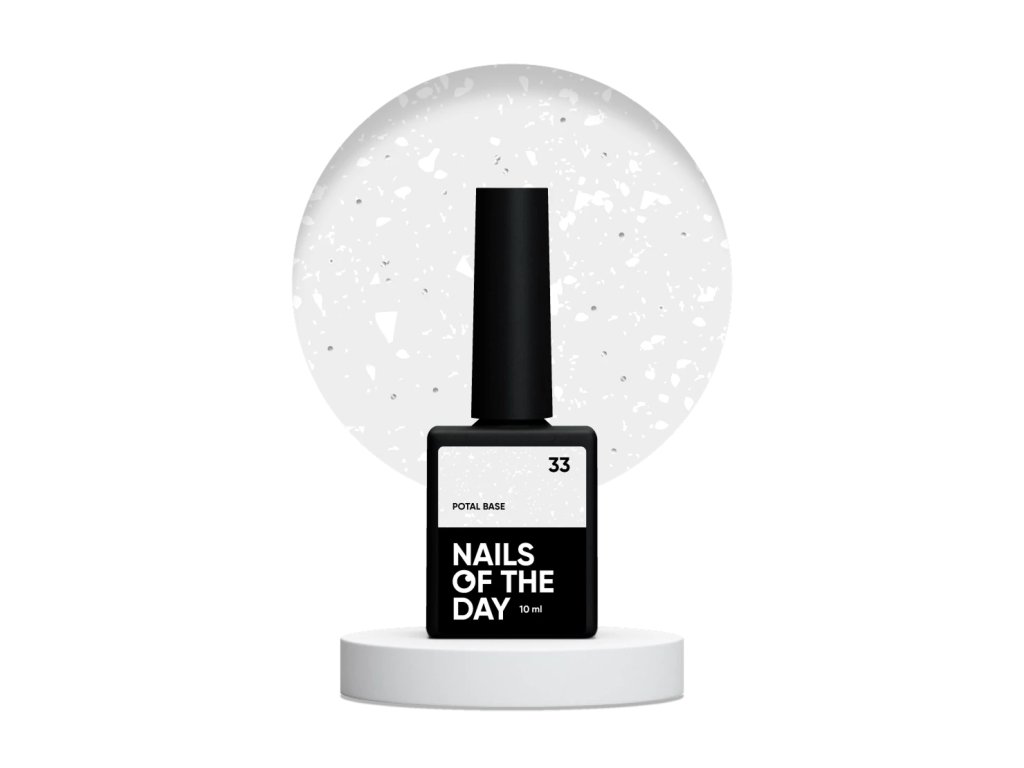 NAILSOFTHEDAY Potal Base 33 – poloprůhledný podklad s sněhobílou potalí a jemným stříbrným reflexem, 10 ml