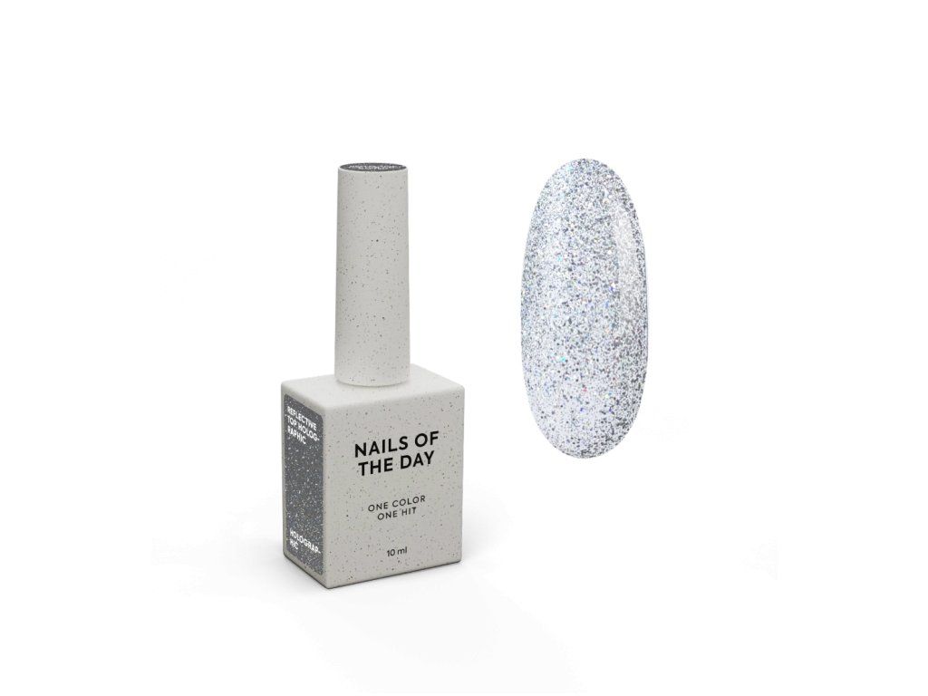 NAILSOFTHEDAY Reflective top Holographic – stříbrný světloodrazný holografický top bez lepivé vrstvy na nehty, 10 ml