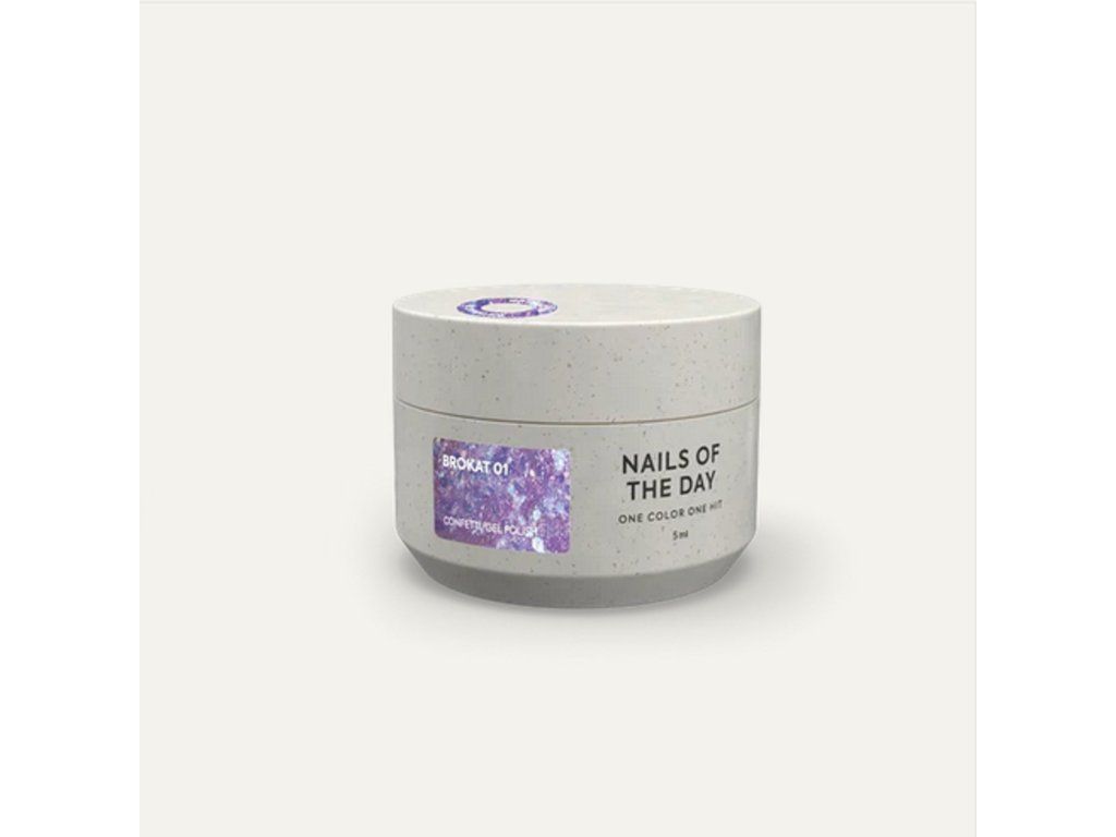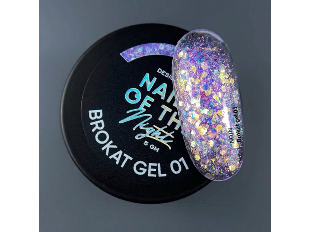 NAILSOFTHENIGHT Brokat gel 01 je designový gel s vysokým obsahem vícebarevného brokátu a třpytek, který vytváří výrazný a originální efekt na nehtech.