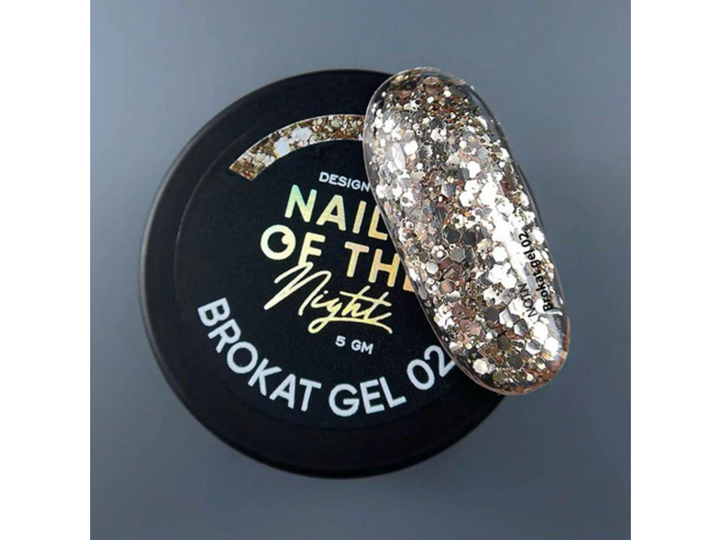 NAILSOFTHENIGHT Brokat gel 02 je designový gel s vysokým obsahem brokátu a třpytek, který vytváří výrazný a luxusní efekt na nehtech.