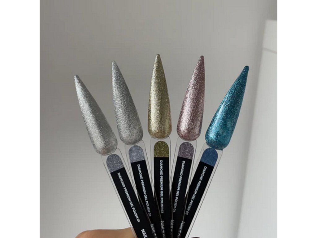 NAILSOFTHENIGHT Diamond Premium gel – gel polish 05 je prémiový gel lak s jemnými kovovými částicemi, které vytvářejí intenzivní diamantový lesk.