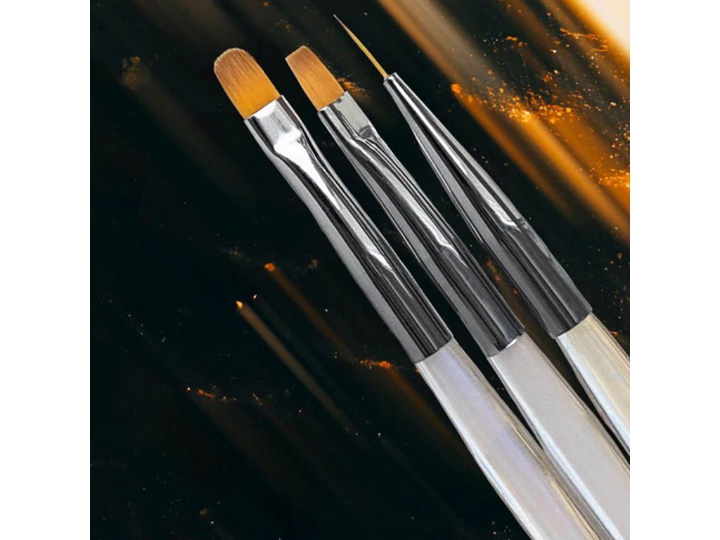 Sada obsahuje tři základní typy štětců, které pokrývají všechny potřeby nehtového stylisty: