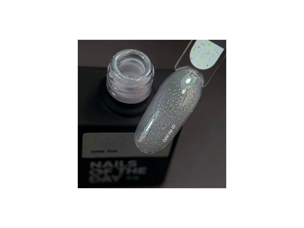 NAILSOFTHENIGHT Opal top — konečný povlak s opálovými třpytkami, bez lepivé vrstvy a bez UV filtrů, neuvěřitelně třpytivý. Vhodný pro všechny typy povlaků. Dodává povrchu efektní jiskření, které se jasně leskne na slunci. Top zpevňuje nehty, chrání je před poškozením, poškrábáním a odlupováním. Díky moderní formuli NAILSOFTHENIGHT Opal top se výborně vyrovnává a pevně pokrývá nehtovou ploténku. Předchází odlupování a poškrábání. Zachovává sytou barvu materiálů a stabilní lesk až čtyři týdny. Nežloutne. Střední konzistence.