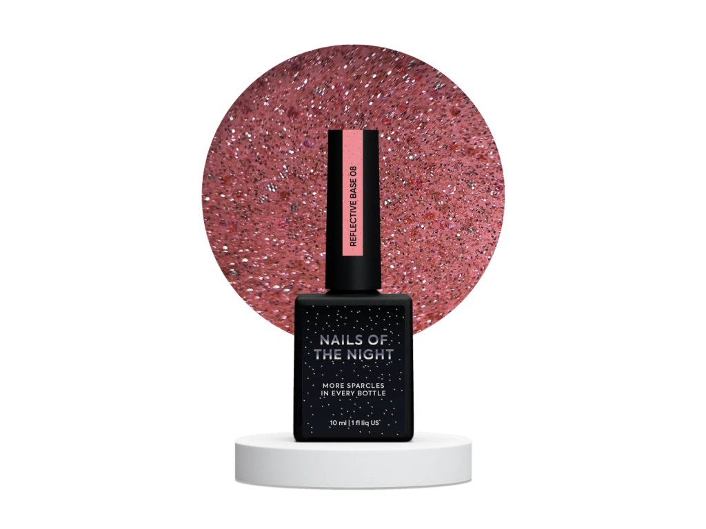 Shimmer dokonale odráží každou částici světla, je jemnozrnný, vysoce kvalitní a jasně se třpytí. Díky moderní formuli se báze bezchybně vyrovnává a vytváří ideální architekturu nehtové ploténky. NAILSOFTHENIGHT Reflective Base má vysokou elasticitu, střední konzistenci. Neobsahuje toxické látky, nemá nepříjemný zápach a je odolná vůči mechanickému působení.