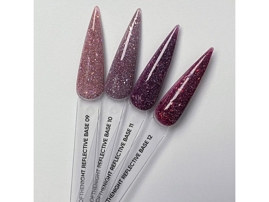NAILSOFTHENIGHT Reflective Base – kamuflážní světloodrážející báze s shimmerem pro nehtovou ploténku. Shimmer intenzivně odráží každou částici světla, je mikrojemný, vysoce kvalitní a jasně se třpytí. Díky moderní formuli se bezchybně vyrovnává a vytváří dokonalou architekturu nehtové ploténky. NAILSOFTHENIGHT Reflective Base má vysokou pružnost, střední konzistenci. Neobsahuje toxické látky, nemá nepříjemný zápach a je odolná vůči mechanickému poškození.