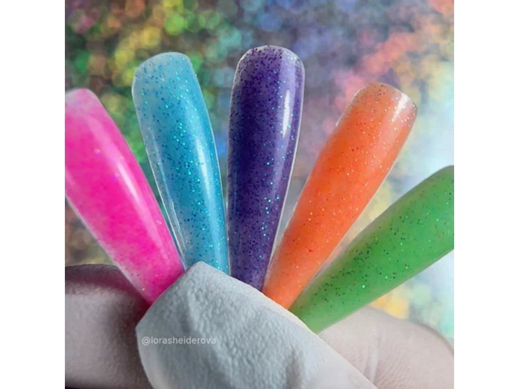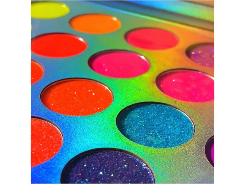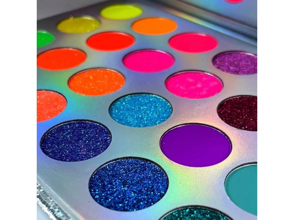 Paleta obsahuje kombinaci neonových, třpytivých a luminescentních pigmentů, které umožňují vytvářet unikátní designy – od jemných přechodů až po výrazné efekty.