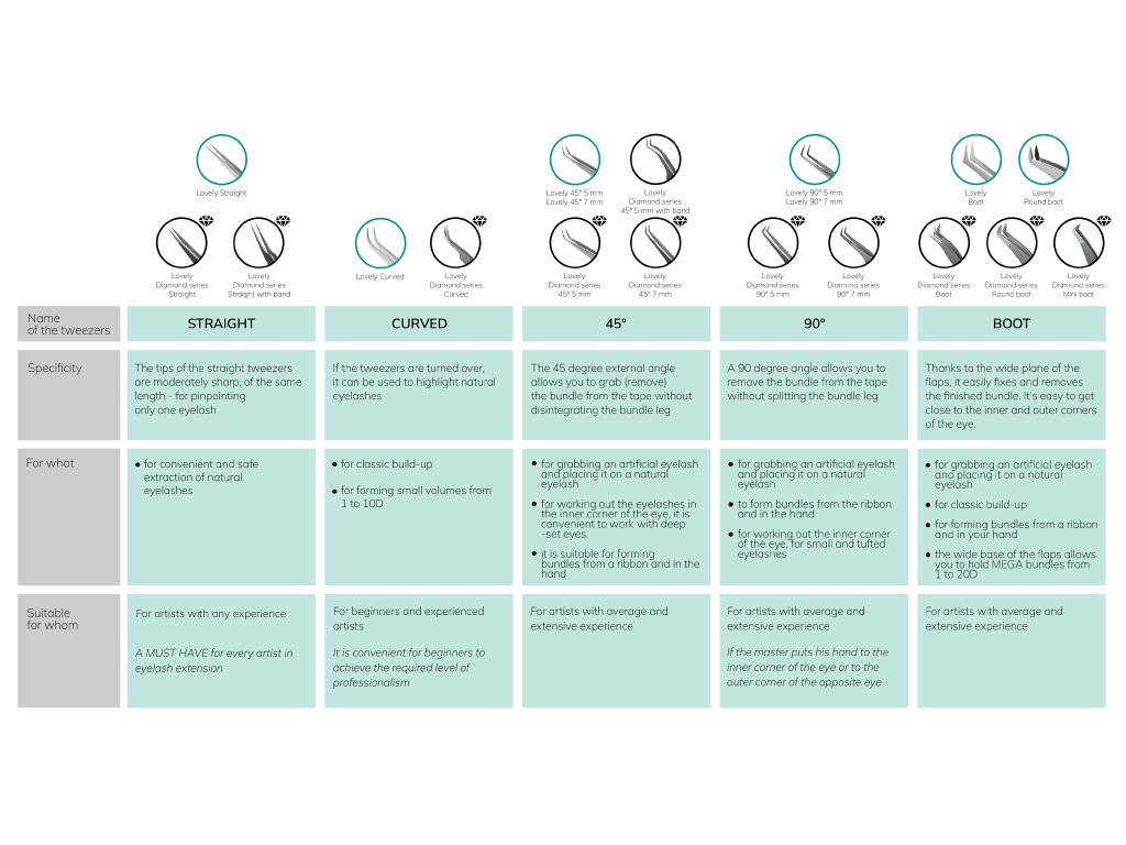 Standardní rovná pinzeta na prodlužování řas Lovely