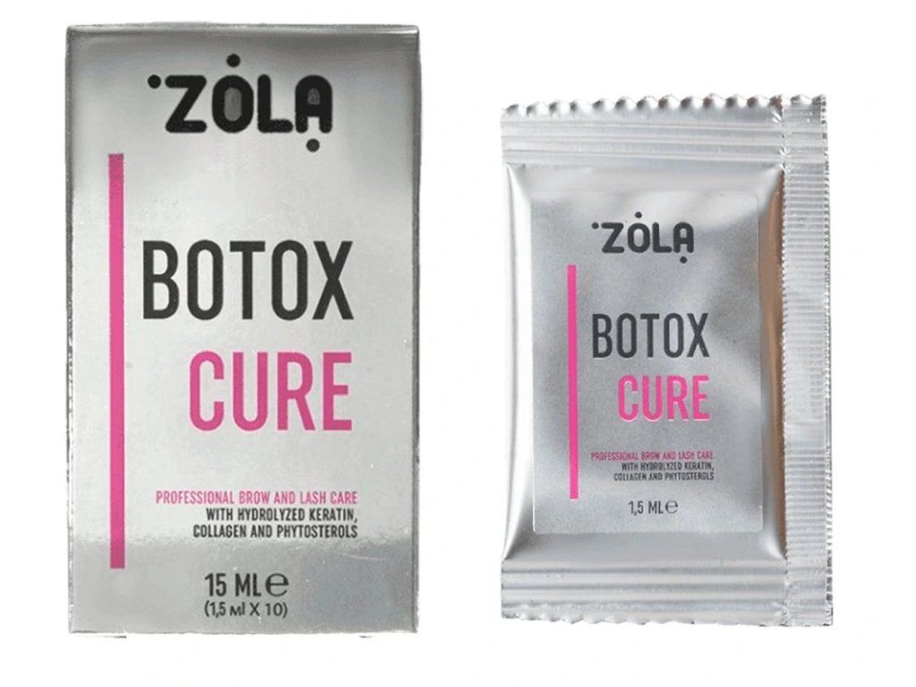 Receptura ZOLA BTX Cure je založena na bohatém komplexu aktivních složek, jako je kolagen, fytosteroly a bioflavonoidy, které chrání strukturu chloupků, vyživují je a dodávají jim lesk. Olej z kamélie, krambi a panthenol přispívají k výživě a zjemnění obočí a řas. Hydrolyzovaného sericin, fibroin a keratin obnovují poškozené chloupky a stimulují jejich růst. BTX Cure můžete zakoupit i jako 15ml lahvičku.